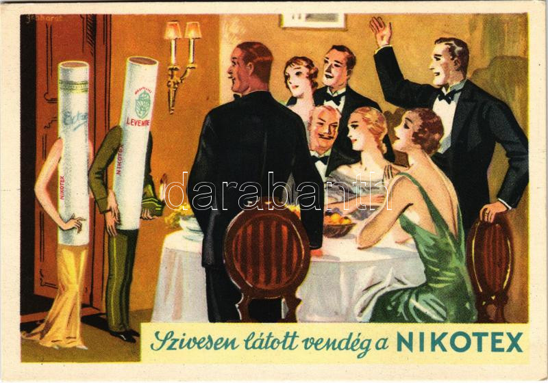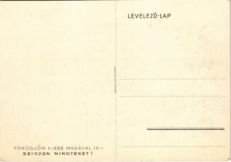 Szívesen látott vendég a NIKOTEX. Törődjön kissé magával is - szívjon Nikotexet! Cigaretta reklám. Klösz Gy. és Fia / Hungarian cigarette advertisement art postcard s: Gebhardt (EK)