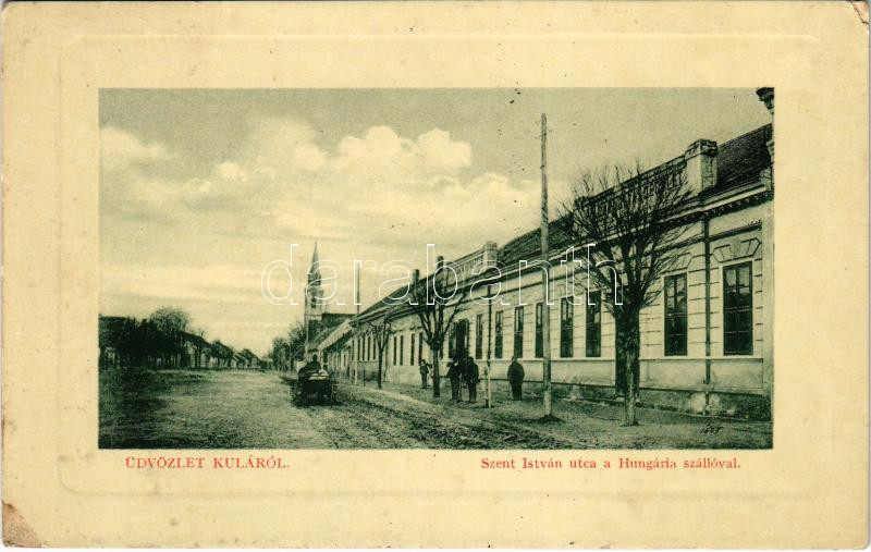 1915 Kúla, Kula; Szent István utca, Hungária szálloda. W.L. Bp. 2336. ... https://www.darabanth.com/hu/432-Gyorsarveres/432.0/Kepeslapok/Vajdasag~2000010/1915-Kula-Kula-Szent-Istvan-utca-Hungaria-szalloda-WL-Bp-2336-street-view-hotel-EK~II2785291