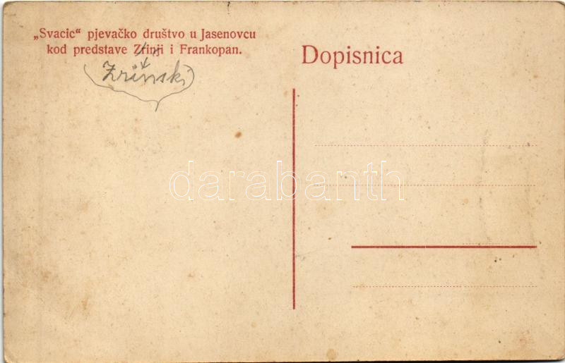 Karasjeszenő, Jaszenova, Jasenovo; "Svacic" pjevacko drustvo u Jasenovcu kod predstave Zrínji i Frankopan / "Svacic" Dalegylet a Zrínyi és Frangepán előadás előtt / Choir