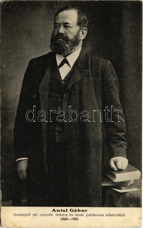 Antal Gábor dunántúli ref. püspök, lelkész és tanár jubileuma alkalmáb... https://www.darabanth.com/hu/432-Gyorsarveres/432.0/Kepeslapok/Vallas~2000052/Antal-Gabor-dunantuli-ref-puspok-lelkesz-es-tanar-jubileuma-alkalmabol-1869-1909-EK~II2784980