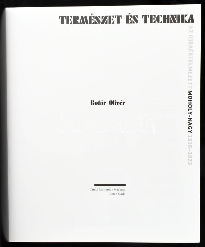Botár Olivér: Természet és technika - Az újraértelmezett Moholy-Nagy 1... https://www.darabanth.com/hu/432-Gyorsarveres/432.0/Konyvek/Konyvek-Epiteszet-muveszet~1000018/Botar-Oliver-Termeszet-es-technika-Az-ujraertelmezett-Moholy-Nagy-1916-1923-Pecs-Bp-200~II2783734