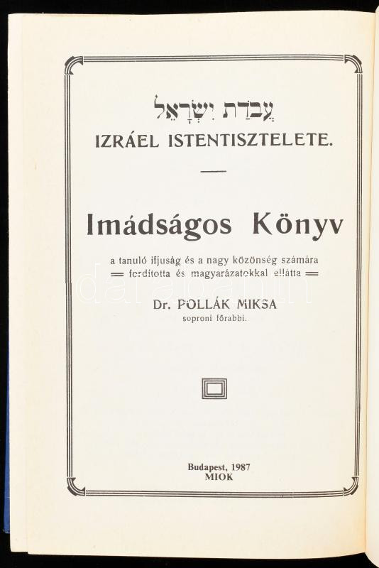 Izráel istentisztelete. Imádságos könyv a tanuló ifjuság és a nagy közönség számára. FordÃtotta és magyarázatokkal ellátta: Dr. Pollák Miksa. Bp., 1987., MIOK. Kiadói kartonált papÃrkötés.