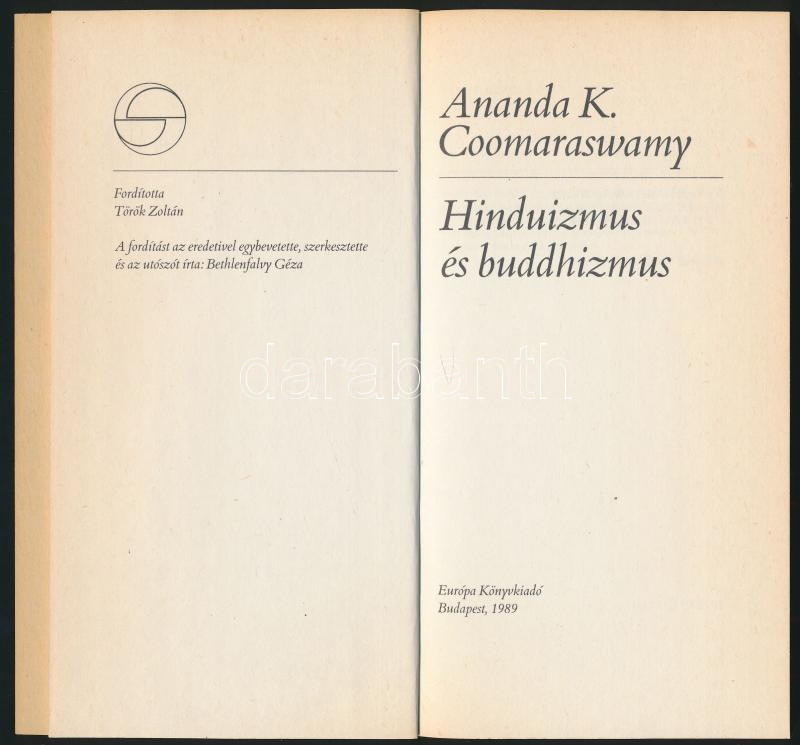 Ananda Kentish Coomaraswamy: Hinduizmus és buddhizmus. Bp., 1989, Euró... https://www.darabanth.com/hu/432-Gyorsarveres/432.0/Konyvek/Konyvek-Vallas~1000032/Ananda-Kentish-Coomaraswamy-Hinduizmus-es-buddhizmus-Bp-1989-Europa-Kiadoi-papirkotes~II2776671