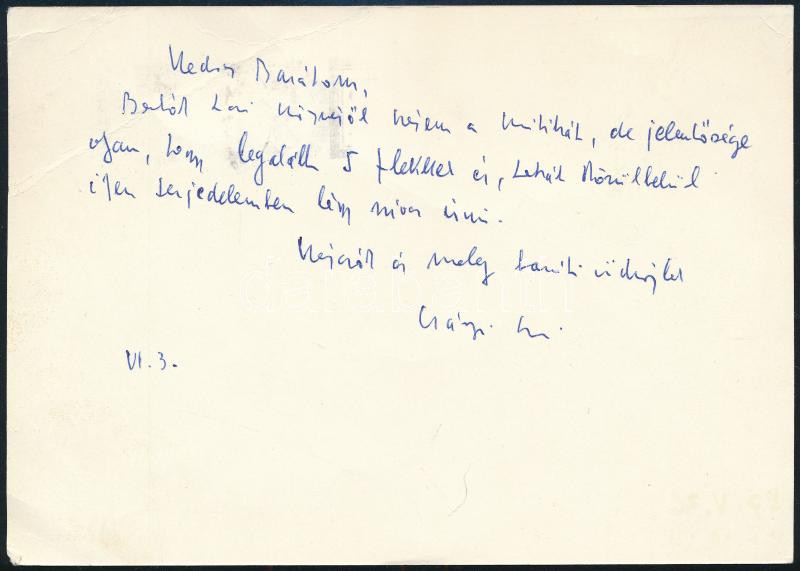 1987 Csányi László (1922-1994) költő, irodalomtörténész saját kézzel í... https://www.darabanth.com/hu/432-Gyorsarveres/432.0/Mutargy-papirregiseg-egyeb/Alairas~500021/1987-Csanyi-Laszlo-1922-1994-kolto-irodalomtortenesz-sajat-kezzel-irt-kepeslapja-Szir~II2787910