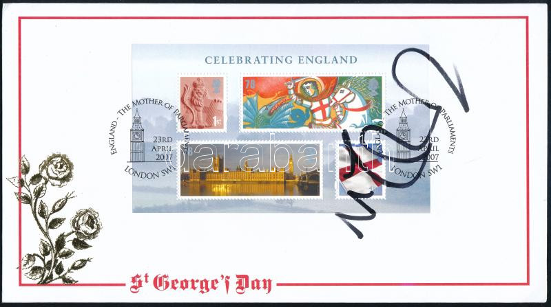 Michael Carrick (1981- ) volt labdarúgó, Manchester United-játékos, edző autográf aláírása FDC-n, tanúsítvánnyal / Michael Carrick former footballer, Manchester United player, manager's, autograph signature on St. George's Day FDC, with certificate