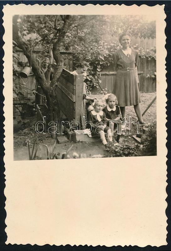 1944 Egy óvóhely lejárata a ferihegyi repülőtér melletti Szemeretelep egyik telkén a súlyos bombázások idején, fotó, hátoldalon feliratozva, szép állapotban, 8,5×6 cm
