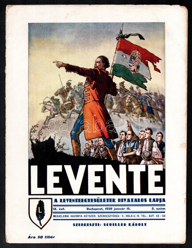 1930 A levente című újság IX. évfolyamának 2 száma, szakadásokkal, 48p https://www.darabanth.com/hu/432-Gyorsarveres/432.0/Mutargy-papirregiseg-egyeb/Nyomtatvanyok~1000002/1930-A-levente-cimu-ujsag-IX-evfolyamanak-2-szama-szakadasokkal-48p~II2781504