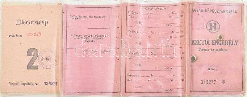 1967 Vezetői engedély, ellenőrző lap és betétlapok https://www.darabanth.com/hu/432-Gyorsarveres/432.0/Mutargy-papirregiseg-egyeb/Okmanyok~500019/1967-Vezetoi-engedely-ellenorzo-lap-es-betetlapok~II2787238