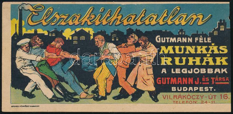Elszakíthatatlan munkás ruhák Gutmann. számolócédula https://www.darabanth.com/hu/432-Gyorsarveres/432.0/Mutargy-papirregiseg-egyeb/Reklam~500025/Elszakithatatlan-munkas-ruhak-Gutmann-szamolocedula~II2778351