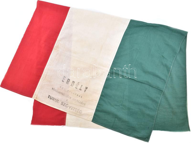 1940 Magyar nemzeti lobogó, rajta "Erdély egy részének visszacsat... https://www.darabanth.com/hu/432-Gyorsarveres/432.0/Mutargy-papirregiseg-egyeb/Tortenelmi-dokumentumok-keziratok-erdekessegek~500020/1940-Magyar-nemzeti-lobogo-rajta-Erdely-egy-reszenek-visszacsatolasa-emlekere-a-Turul-Szov~II2787675