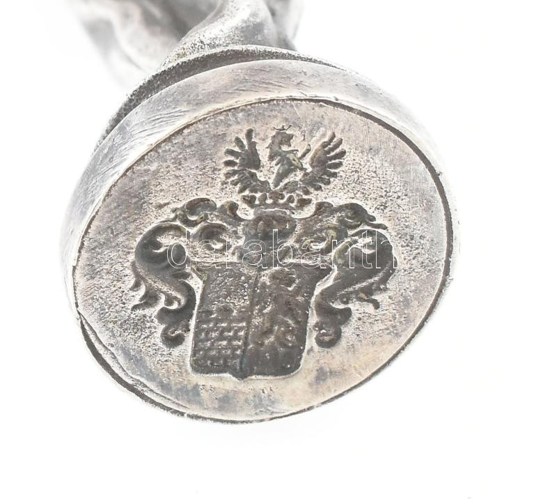 Leírás: Ezüst (Ag) Szecessziós női alak, pecsétnyomó, jelzés nélkül, ismeretlen címeres vésettel, m: 8,5 cm. Bruttó: 94g