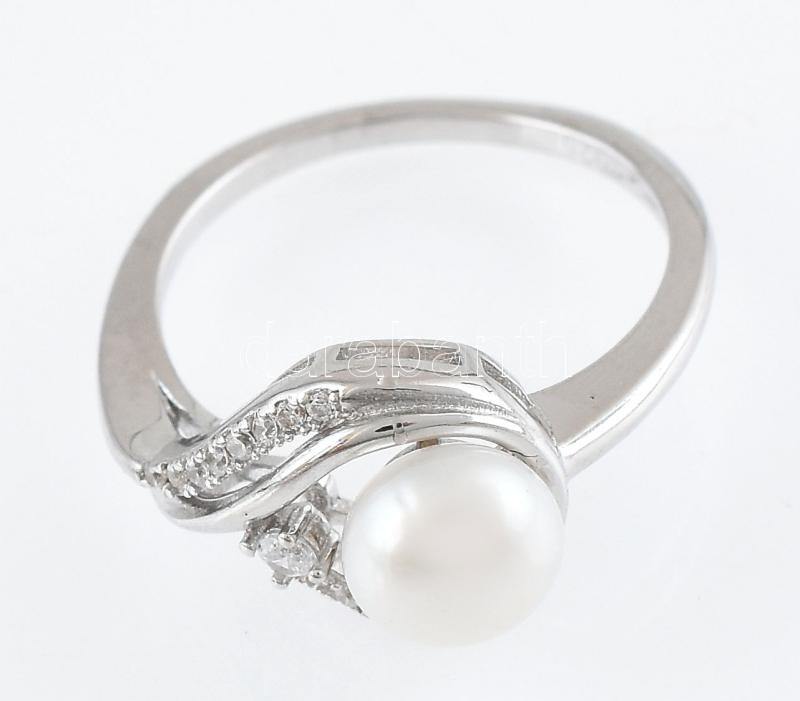 Leírás: Ezüst (Ag) tenyésztett gyöngyös gyűrű, jelzett, m:51. bruttó: 2,41g