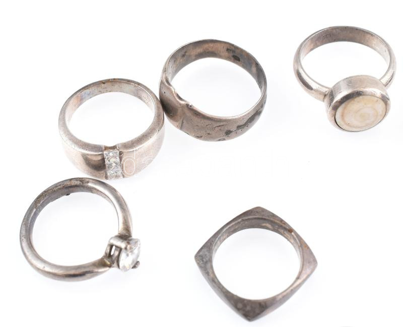 Leírás: Ezüst (Ag) vegyes gyűrűk, részben jelzett, vegyes méret, brutó: 44g