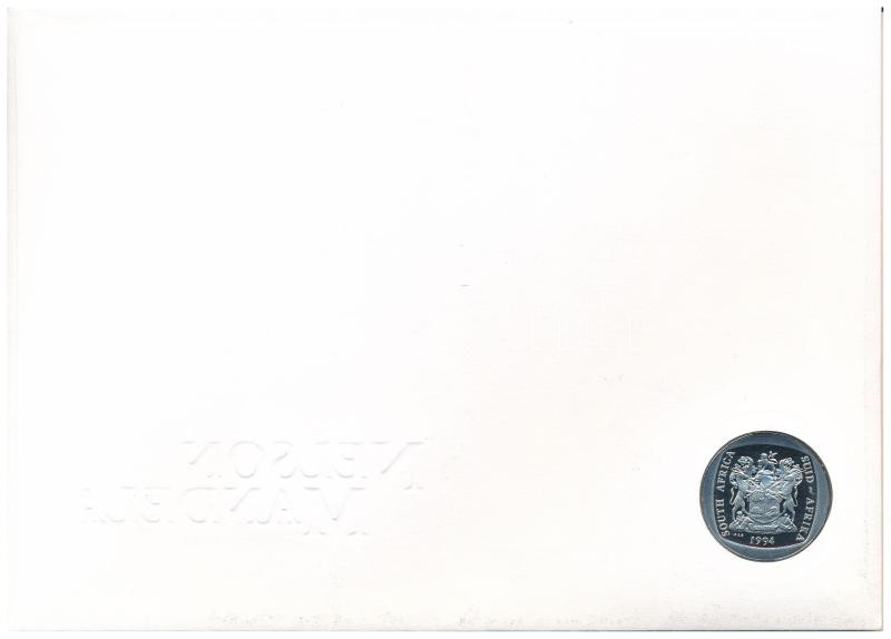 Leírás: Dél-Afrika 1994. 5R "Elnöki beiktatás" érme bélyeges "Nelson Mandela" borítékban, bélyegzéssel T:PP South Africa 1994. 5 Rand "Presidential Inauguration" coin in "Nelson Mandela" envelope with stamp and cancellation C:PP