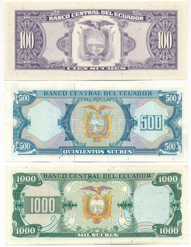 Ecuador 1988. 100 Sucres + 500 ... https://www.darabanth.com/hu/432-Gyorsarveres/432.0/Numizmatika/Kulfoldi-bankjegyek~1500014/Ecuador-1988-100S-plus-500S-plus-1000S-TI-Ecuador-1988-100-Sucres-plus-500-Sucres-plus-1000-Sucres-CUNC~II2776338