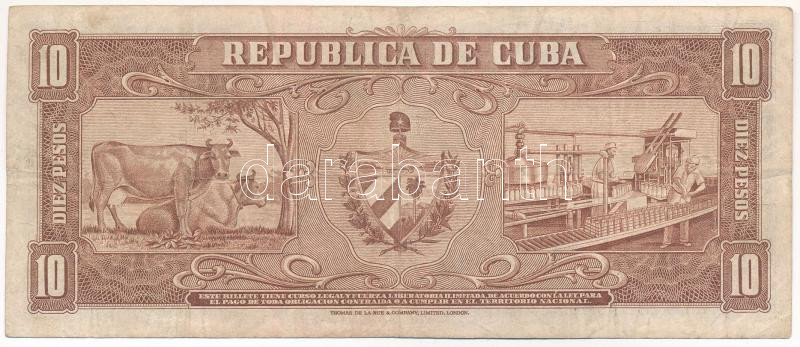 Krause P#88.a https://www.darabanth.com/hu/432-Gyorsarveres/432.0/Numizmatika/Kulfoldi-bankjegyek~1500014/Kuba-1956-10P-TIII-Cuba-1956-10-Pesos-CF-Krause-P2388a~II2781987