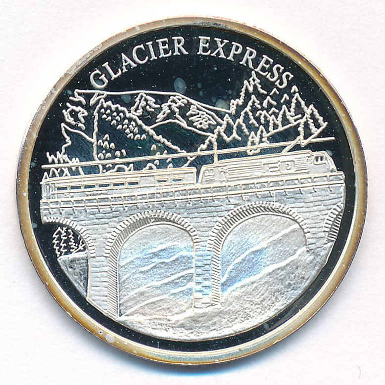 Germany 1996. "History of Railroads - Glacier Express" two-sided hallmarked Ag commemorative medallion with certificate (12g/0.999/30mm) C:PP fingerprint, patina