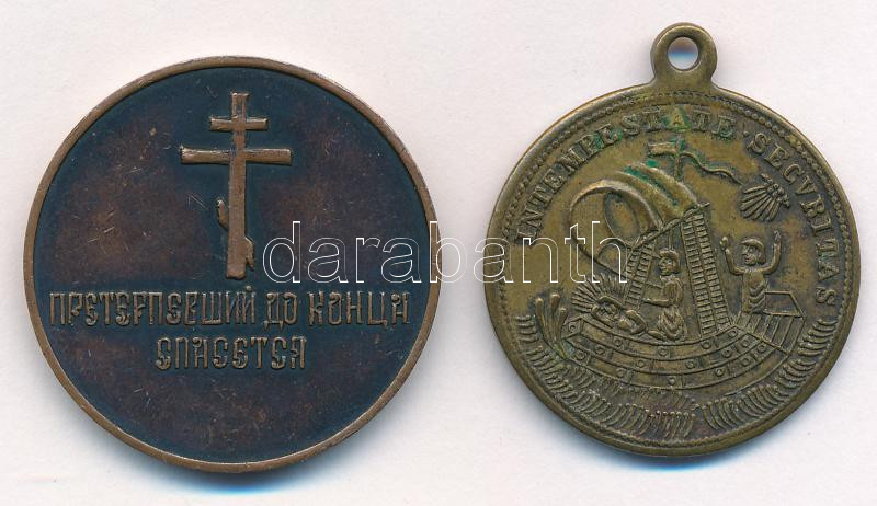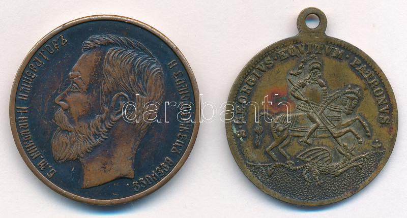 Oroszország DN "II. Miklós cár" kétoldalas bronz emlékérem (33mm) + DN "Sárkányölő Szent György" kétoldalas Cu emlékérem füllel (30mm) T:2 patina