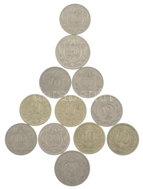 Leírás: Ausztria 1893-1910. 10h (10db/8xklf) + 1894-1911. 20h (2xklf) T:2,2- patina