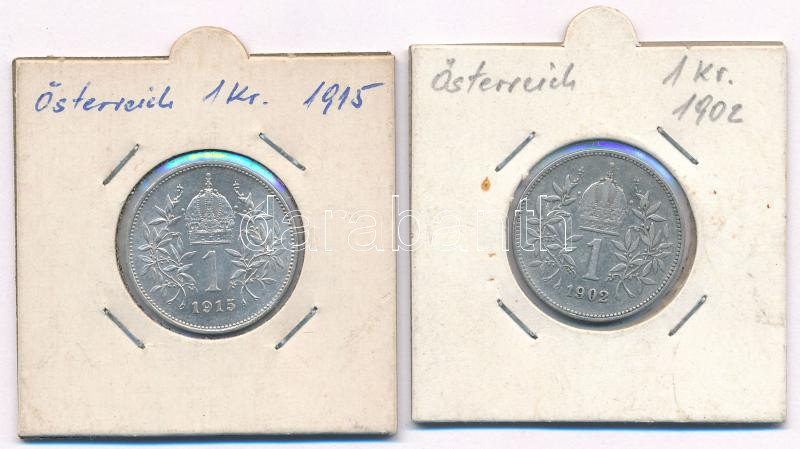 Leírás: Ausztria 1902-1915. 1K Ag "Ferenc József" (2xklf) T:2-,1- Austria 1902-1915. 1 Corona Ag "Franz Joseph" (2xdiff) C:VF,AU Krause KM#2804, KM#2820.