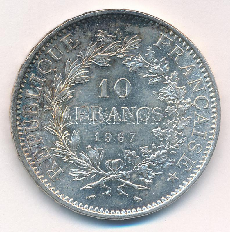 France 1967. 10 Francs Ag "Hercules group" C:AU patina