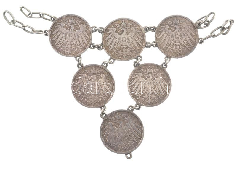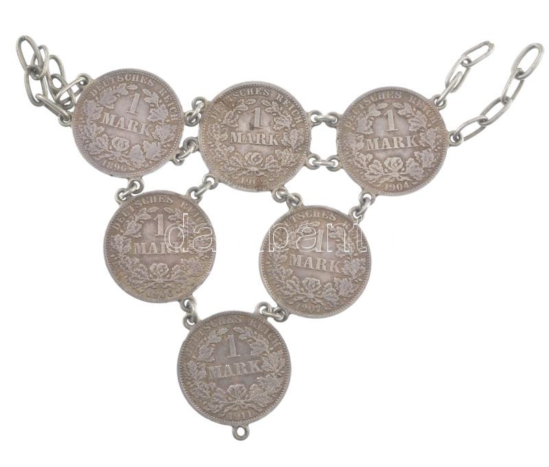 Német Birodalom 1896-1911. 1M Ag (6xklf) mind füllel, nyaklánccá alakítva T:2-3 a lánc része sérült, hiányos, patina