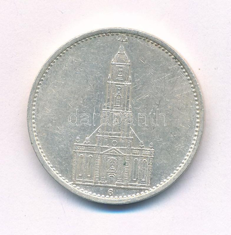 Leírás: Német Harmadik Birodalom 1934G 5M Ag "Garnisonkirche" T:2 German Third Reich 1934G 5 Reichsmark Ag "Garnisonkirche" C:XF Krause KM#83