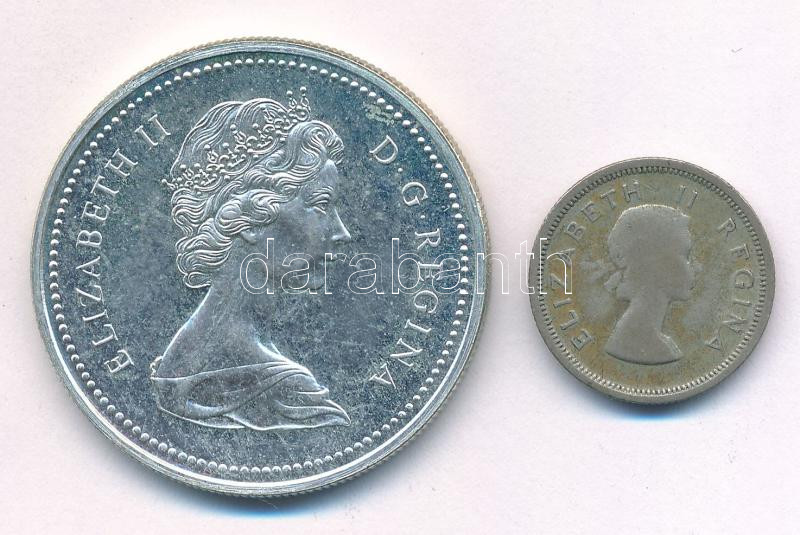 Mixed: South Africa 1954. 6 Pence Ag "Elizabeth II" + Canada 1974. 1 Dollar Ag "Winnipeg" C:F,AU