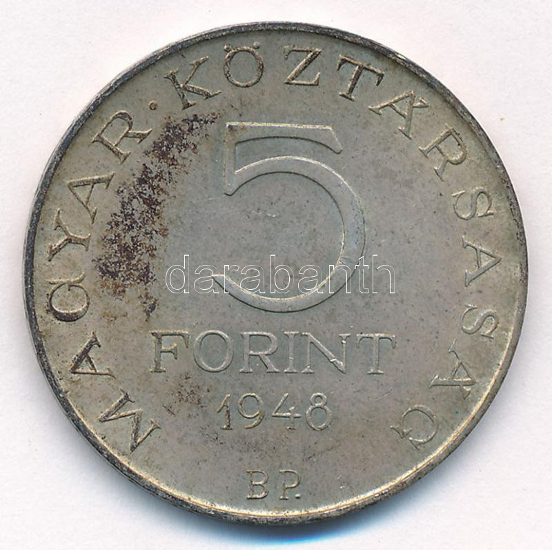 Leírás: 1948. 5Ft Ag "Petőfi" T:1- patina Adamo EM1