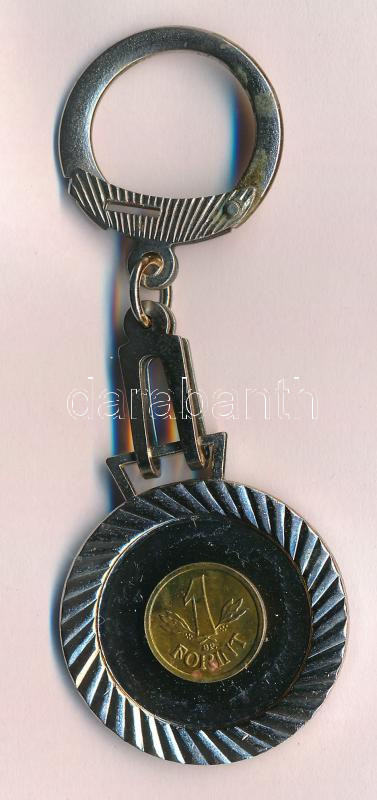 Leírás: ~1970. 1Ft sárgaréz mini pénz kulcstartóra rögzítve T:1-