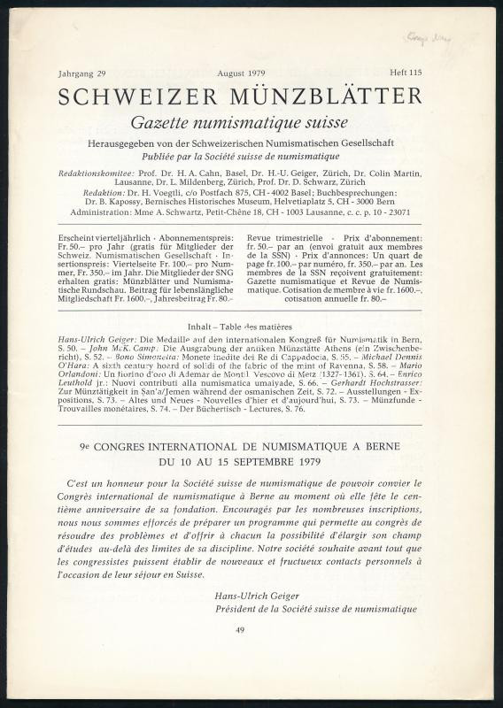 6 különbözÅ‘ német nyelvű numizmatikai értesÃtÅ‘ "Numisma tisches Nachrichten blatt 1973/6, 1975/4, Der Münzen- und medaillensammler berichte 1979 március, Schweizer Münzblatter 1958 június, 1972 augusztus, 1979 augusztus" használt de jó állapot 6 different numismatic bulletin in german "Numisma tisches Nachrichten blatt 1973/6, 1975/4, Der Münzen- und medaillensammler berichte March 1979, Schweizer Münzblatter June 1958, August 1972, August 1979", used but in god condition