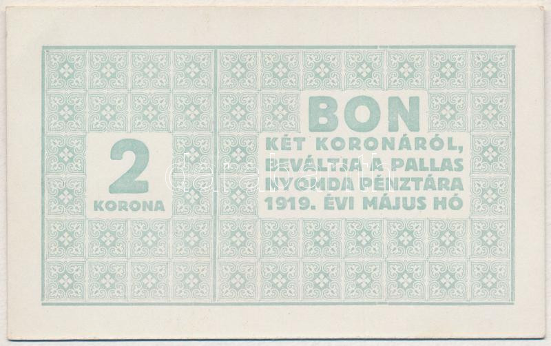 Budapest 1919. 2K "Pallas Nyomda" karton szükségpénz, sorszá... https://www.darabanth.com/hu/432-Gyorsarveres/432.0/Numizmatika/Papir-es-fem-szuksegpenzek~1500006/Budapest-1919-2K-Pallas-Nyomda-karton-szuksegpenz-sorszam-alairas-nelkul-TI-Adamo-BUC~II2778768