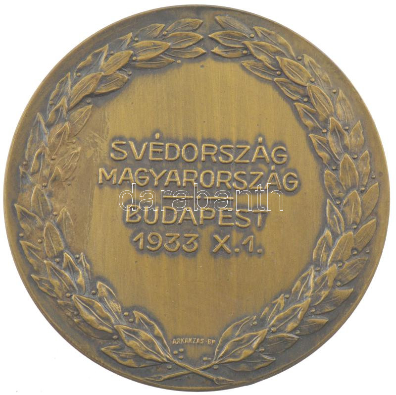 1933. "A Magyar Athletikai Szövetség Emlékérme / Svédország-Magyarország - Budapest 1933. X. 1." bronz emlékérem "Arkanzas BPest" gyártói jelzéssel, eredeti, sérült tokban (50mm) T:1-,2