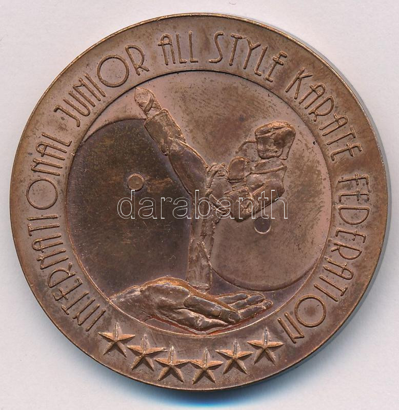 Leírás: Fritz Mihály (1947-) DN "International Junior All Style Karate Federation" angol nyelvű, kétoldalas bronz emlékérem (42,5mm) T:1- patina