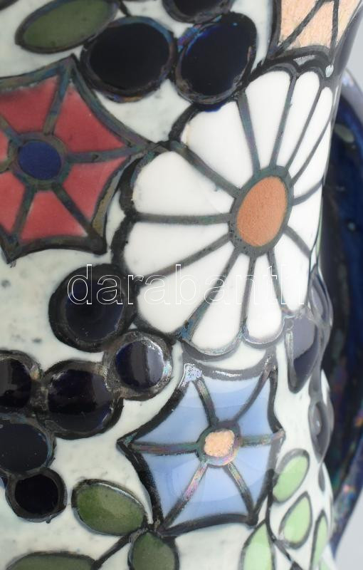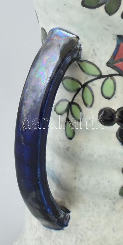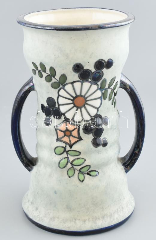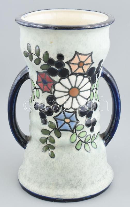 Leírás: Cseh szecessziós, fajansz füles váza, jelzés nélkül, korának megfelelő állapotban, 1920 körül, m: 24,5 cm