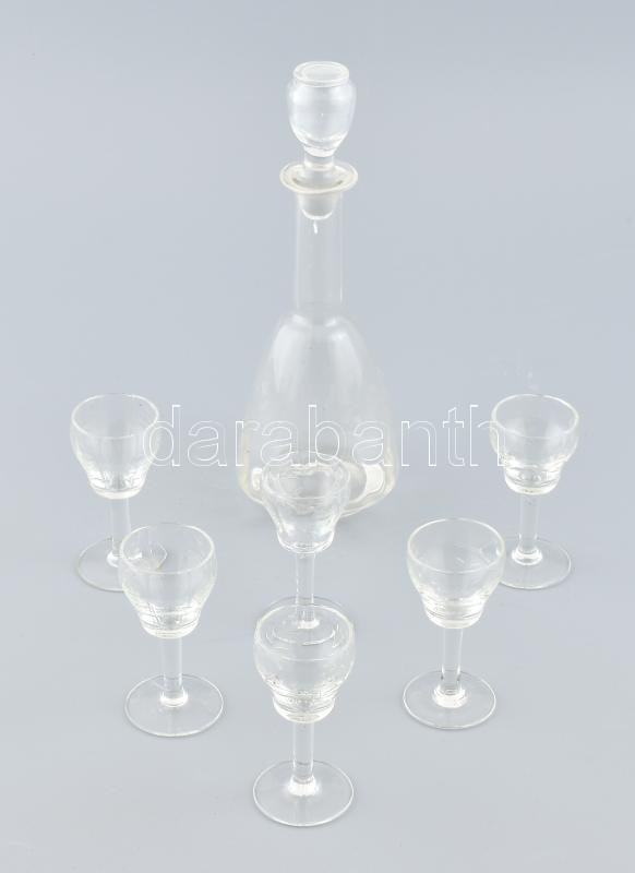 Leírás: Likőrös készlet Metszett üveg 6 pohár és butéla üveg dugóval 26 cm