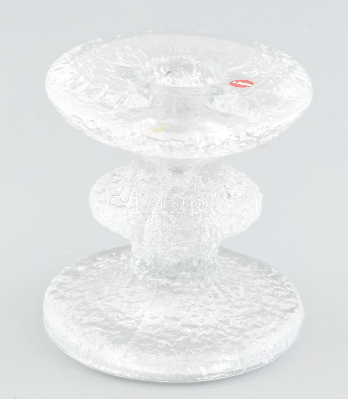 Modern üveg gyertyatartó, m: 7,5 cm, d: 7 cm