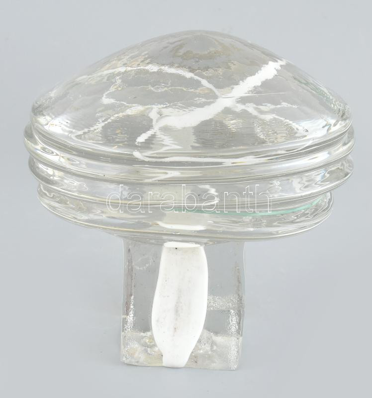 Leírás: Polyák János (1967-): Gomba (cím nélkül). Üvegművészeti alkotás. Szabadon öntött. Jelzés nélkül. Apró kopásnyomokkal. m: 17 cm, d: 18 cm