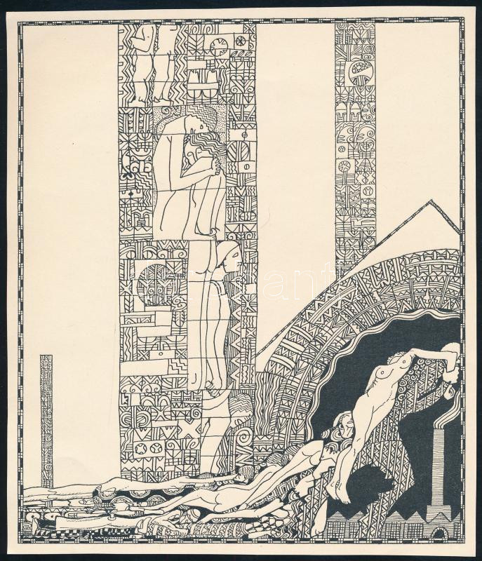 Leírás: Kozma Lajos (1884-1948): Testek. Cinkográfia, papír, jelzett a cinkográfián, körbevágott, 19,5×16,5 cm