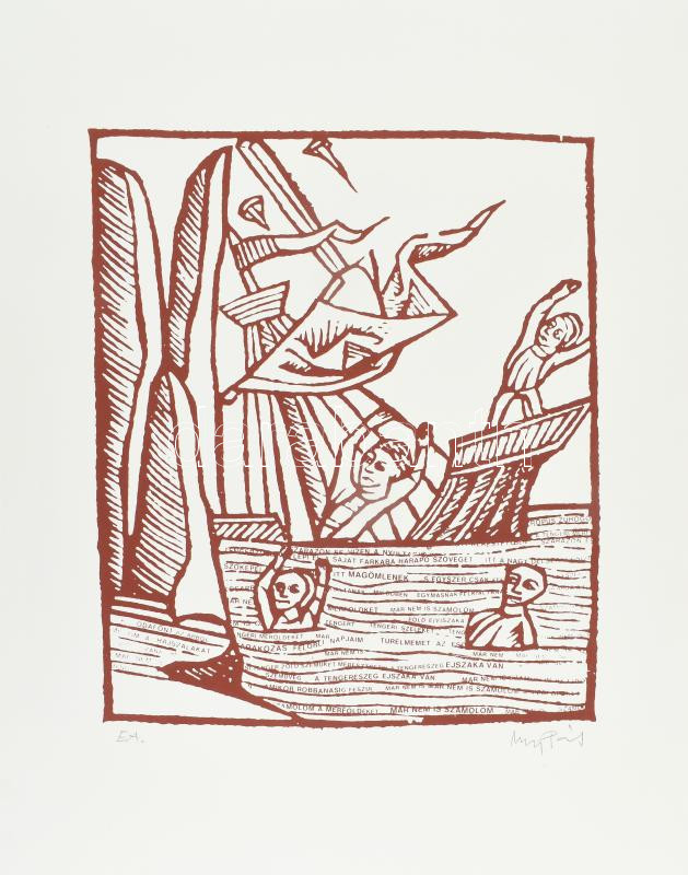 Nagy Pál (1934-): Hajótöröttek. Szitanyomat, papír, jelzett, művészpéldány EA. jelzéssel. 30,5×25,5 cm / Screenprint on paper, signed. EA. artist's proof.