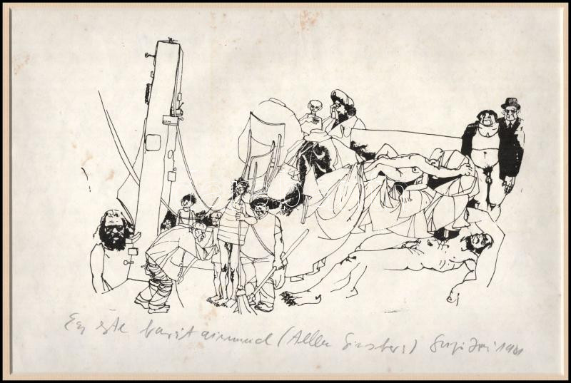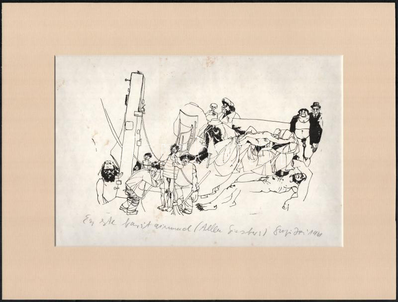 Leírás: Szujó Zoltán (1944-1986) Egy este barátaimmal (Allen Ginsberg). Tus, papír. Jelzett, paszpartuban