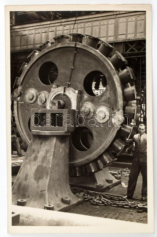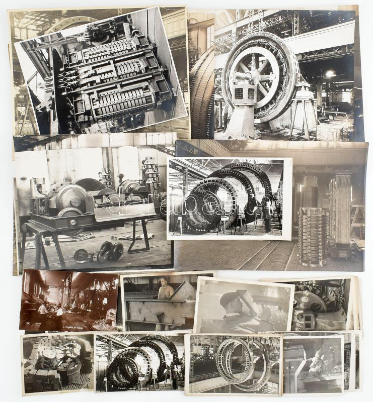 cca 1920-1940 Resica (Resicabánya, Erdély), felvételek a gyár üzemeiről, árucikkeiről (bányász csillék, generátorok, acélipari cikkek), stb. Összesen 67 db fotó, vegyes méretben (közte több nagyméretű is), cca. 10x9 cm és 30x22 cm között. Ritka, tartalmas anyag! / Resita, Recita (Transylvania), photos of the factory and its products (mine carts, generators, steelware), etc. 67 pcs in total, in different sizes, between approx. 10x9 cm and 30x22 cm