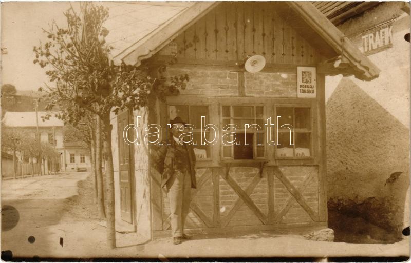 Unknown town, Predaj Tabaku Trafik / tobacco shop. photo https://www.darabanth.com/hu/433-Gyorsarveres/433.0/Kepeslapok/Cseh-Koztarsasag~1500028/Unknown-town-Predaj-Tabaku-Trafik-tobacco-shop-photo~II2700059
