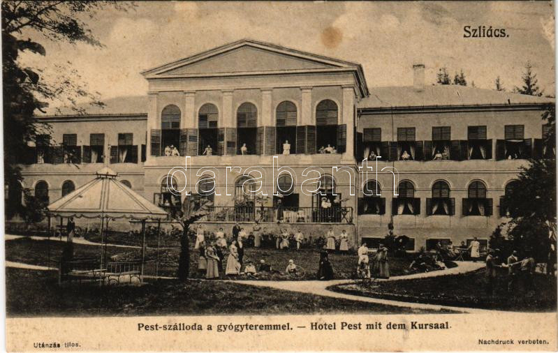 Szliács, Sliac; Pest szálloda a gyógyteremmel / Hotel Pest mit dem Kur... https://www.darabanth.com/hu/433-Gyorsarveres/433.0/Kepeslapok/Felvidek~1500008/Szliacs-Sliac-Pest-szalloda-a-gyogyteremmel-Hotel-Pest-mit-dem-Kursaal-hotel-spa-fl~II2792346