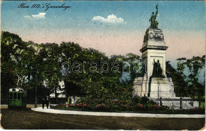Leírás: 1920 Den Haag, s'-Gravenhage, The Hague; Plein 1813 / street view, tram, monument (EK)