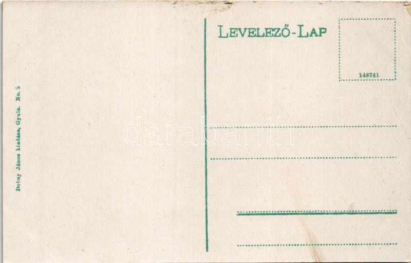 Gyula, Kossuth Lajos utca, kerékpáros. Dobay János kiadása https://www.darabanth.com/hu/433-Gyorsarveres/433.0/Kepeslapok/Magyarorszag~1500006/Gyula-Kossuth-Lajos-utca-kerekparos-Dobay-Janos-kiadasa~II2718268
