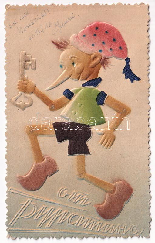 1960 Pinokkió. Orosz modern dombornyomott lap / Pinocchio. Modern Russ... https://www.darabanth.com/hu/433-Gyorsarveres/433.0/Kepeslapok/Muveszlapok~1500069/1960-Pinokkio-Orosz-modern-dombornyomott-lap-Pinocchio-Modern-Russian-embossed-textile-postcard~II2795195