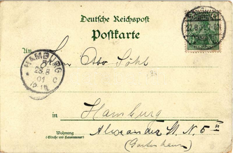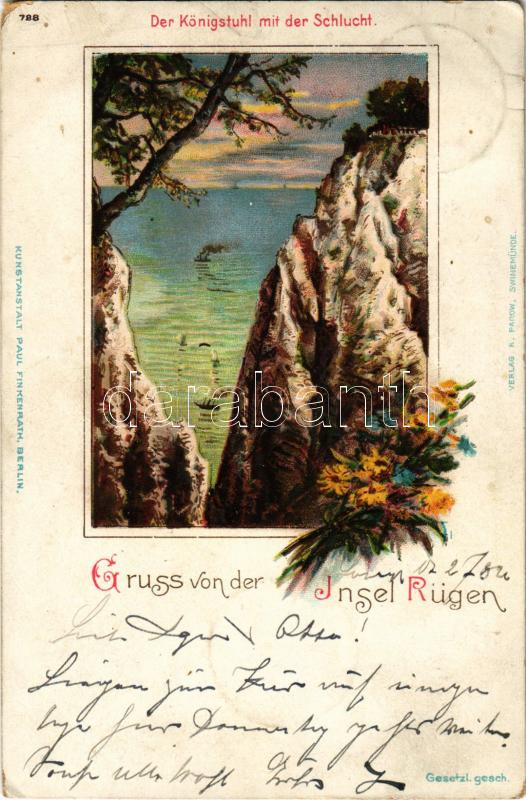 Leírás: 1901 Rügen, Gruss von der Insel Rügen. Der Königstuhl mit der Schlucht. Kunstanstalt Paul Finkenrath Art Nouveau, floral, litho (EM)