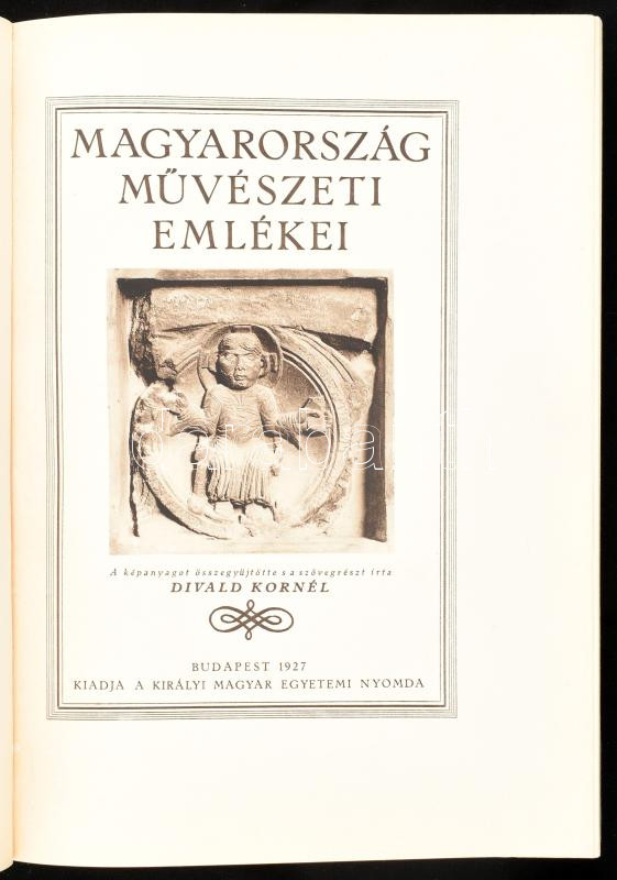 Divald Kornél: Magyarország művészeti emlékei. Bp., 1927, Kir. M. Egyetemi Nyomda, 256 p. Gazdag fekete-fehér szövegközti képanyaggal illusztrált. Kiadói félszvászon-kötés, zsinórfűzéssel, szép állapotban