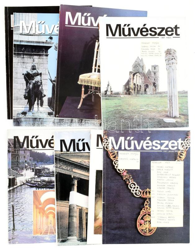 1987 Művészet c. folyóirat XXVIII. évf. 8 db száma, benne festők, képzőművészek autográf aláírásaival: Keserű Katalin, Gerle Margit, Bak Imre, Swierkiewicz Róbert, Szabados Árpád, Kárpáti Tamás, stb. (össz. 21 db aláírás)